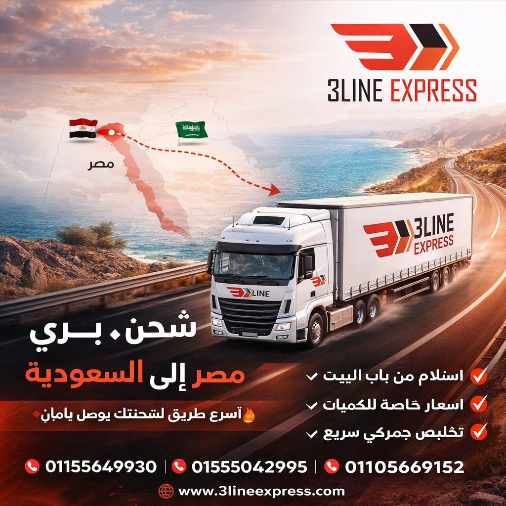 تقدم شركة 3Line Express أفضل خدمات شحن من مصر للسعودية بسرعة وأمان. نحن متخصصون في الشحن الدولي والبري مع متابعة مستمرة حتى وصول الشحنة إلى باب العميل.